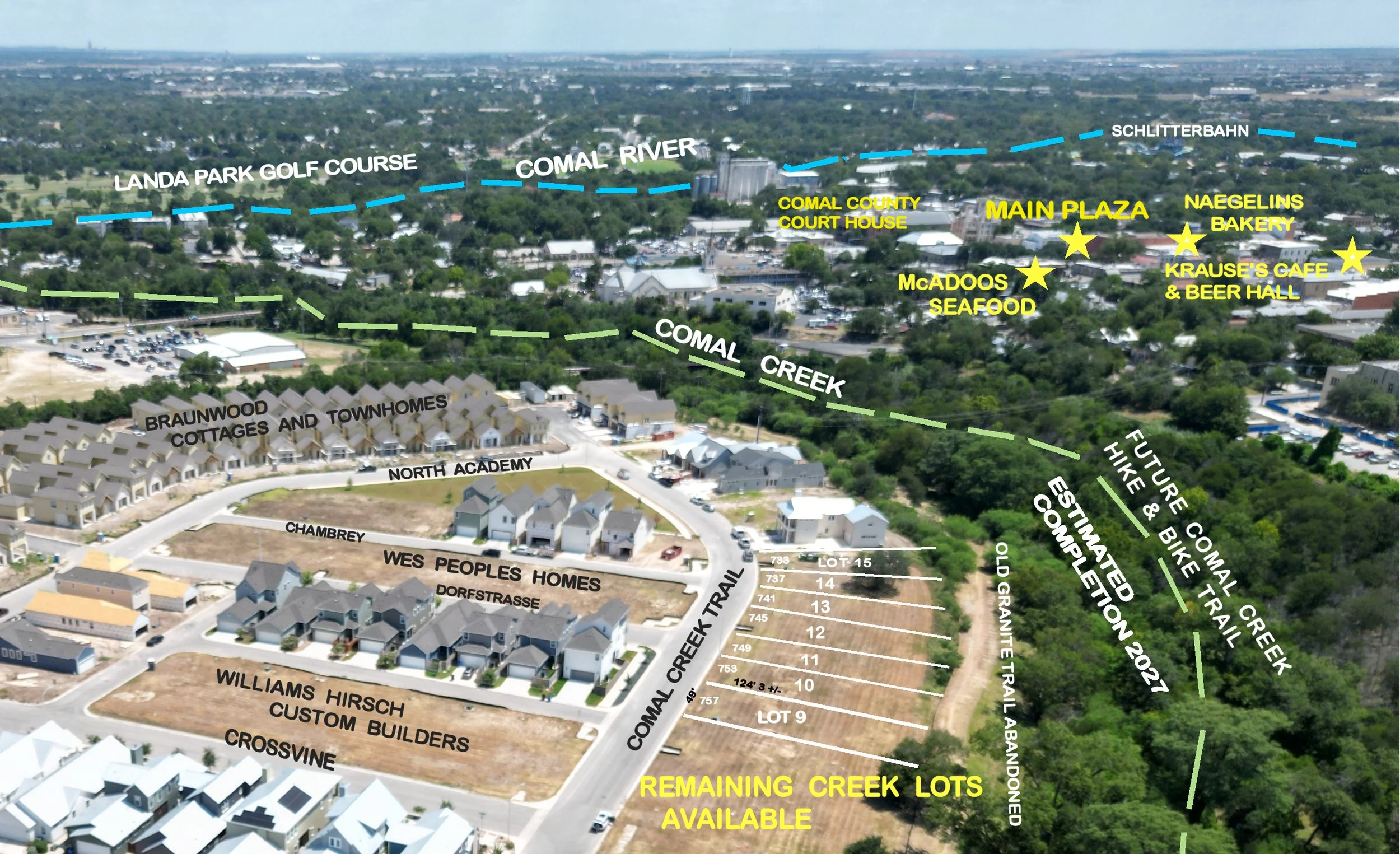 Discover your dream homesite among our exclusive collection of premium creek side lots in Town Creek, New Braunfels. Each lot offers a unique opportunity to build your custom dream home with stunning views and direct access to the natural beauty of Comal Creek.